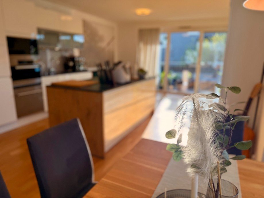 Die Wohnung überzeugt mit hochwertigen Materialien und einer modernen Markenküche von Kernküchen, ausgestattet mit Geräten namhafter Hersteller: